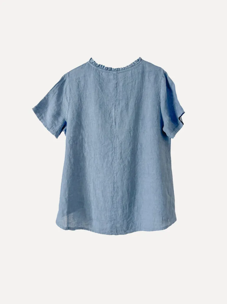 En av våra bästsäljare är tillbaka! Denna söta T-shirt i linne med en smickrande V-ringning är ett måste i din garderob. Perfekt att matcha med ett par jeans eller snygga byxor, en mångsidig favorit du kommer att bära hela säsongen. Nu finns Greta i fräscha och livliga vårfärger!