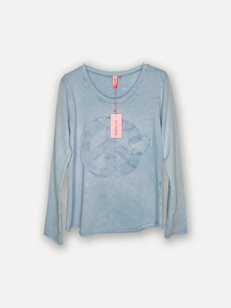 Love Peace T – en långärmad t-shirt inspirerad av vår bästsäljande Love Peace Sweater. Tillverkad i ett mjukt och skönt material med en avslappnad passform. Perfekt för en bekväm och trendig vardagslook. Finns i himmelsblått och rosa.