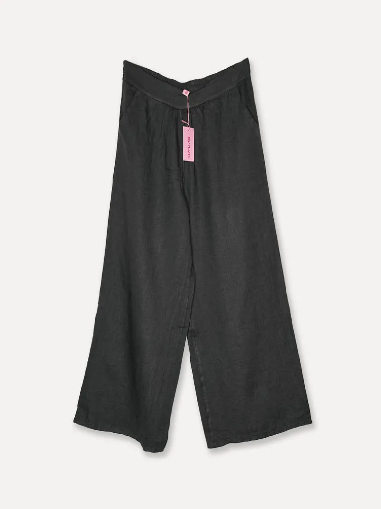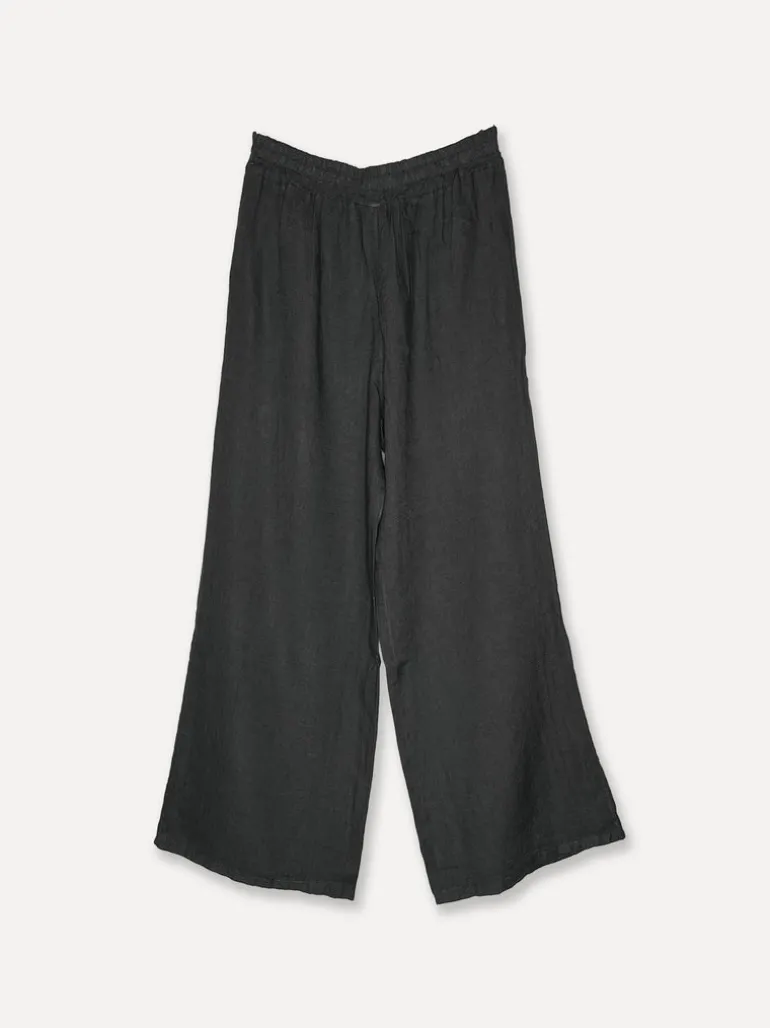 Luftiga byxor i 100% linne, perfekta för både vardag och semester. Den vida passformen och den elastiska midjan ger maximal komfort samtidigt som de behåller en elegant silhuett. Lätta att matcha med allt från en enkel topp till en oversize skjorta för en avslappnad men sofistikerad look.