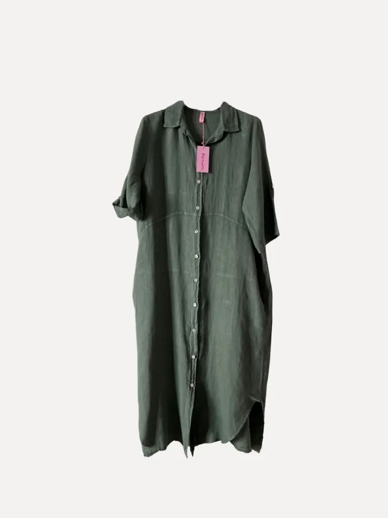 JOAN DRESS är tillbaka! Jösses vilken efterfrågan, vi är så glada att ha en av våra core pieces tillbaka, Joan, en hellång linneklänning som du kan bära som den är eller uppknäppt som en kaftan.