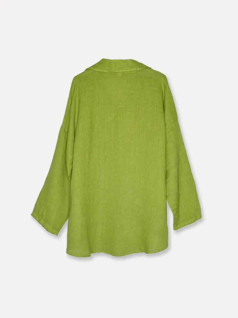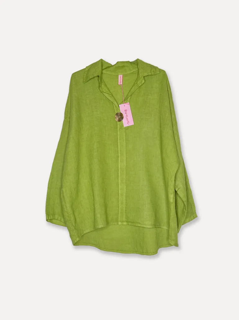 5662 Blouse with Button Linen, Olive