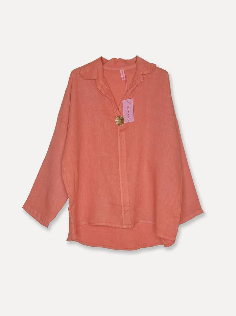 5662 Blouse with Button Linen, Tomato