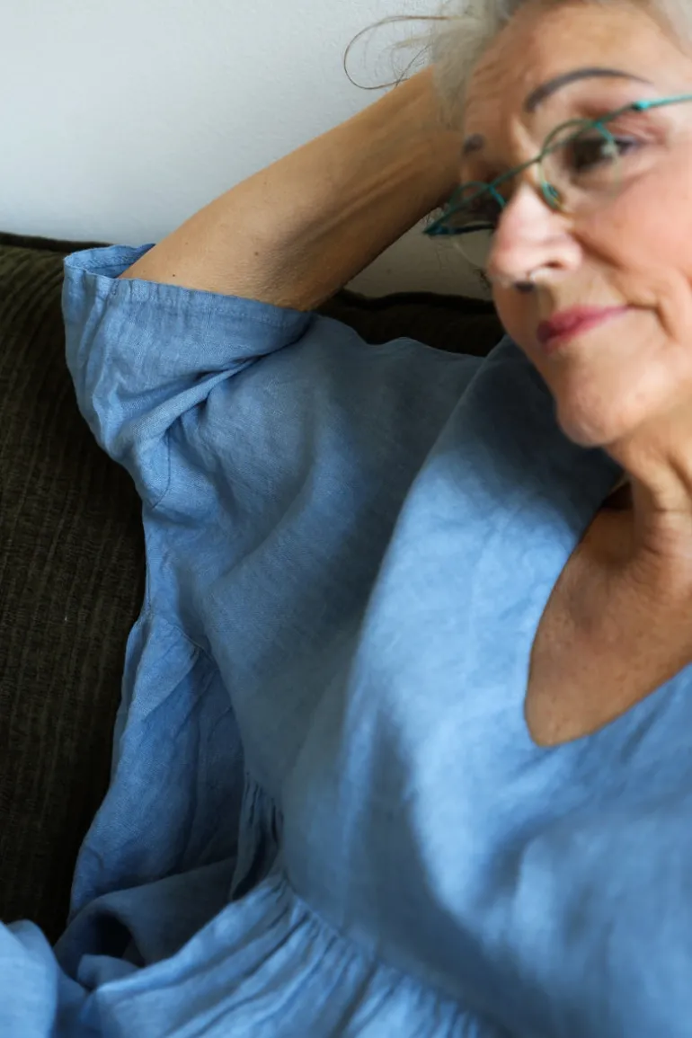 Den vackra knälånga klänningen Livia är tillbaka! Med härlig vidd, trekvartsärmar och praktiska fickor kombinerar den både stil och funktion. Den smickrande V-ringningen ger en feminin touch. Nu i nya färger och samma bekväma passform.