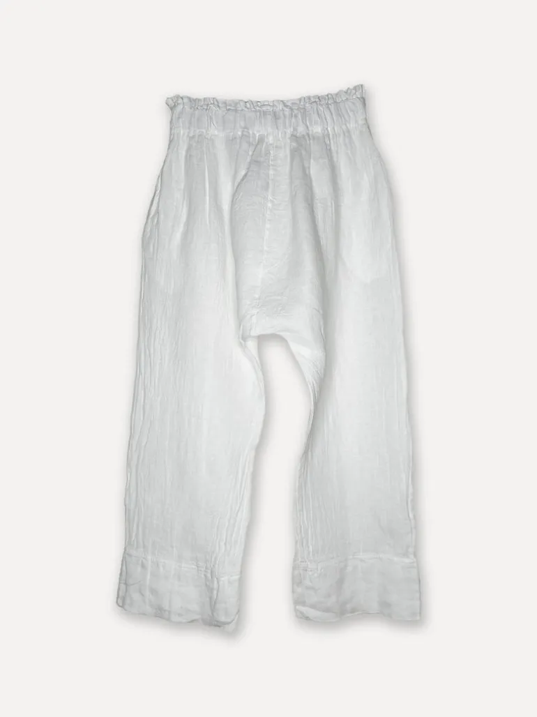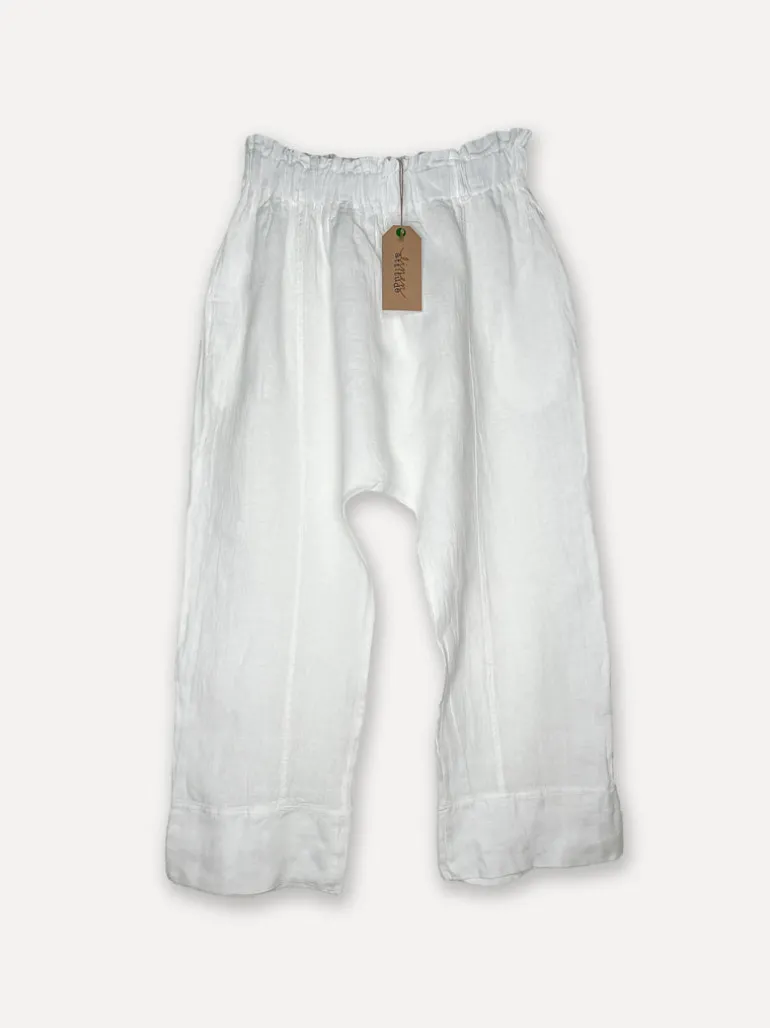 Om du gör som vi så går du från jeans på vintern till linnebyxor på sommarhalvåret. Dessa kan du använda till allt. Kort topp, lång skjorta, klänning över. Eller bara ett tunt linne till och från glasskjollen. Fickor i sidorna.