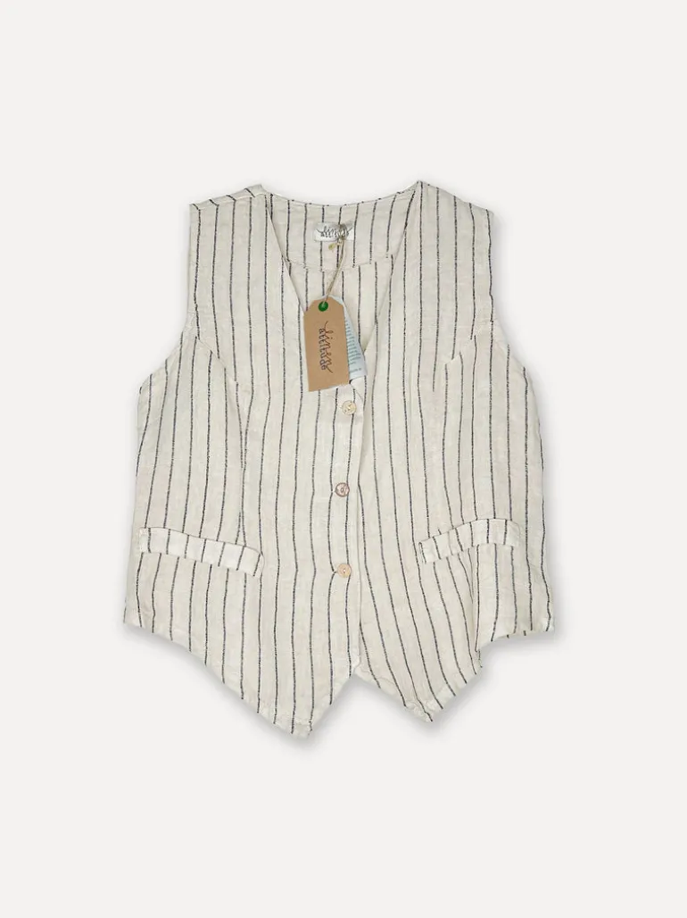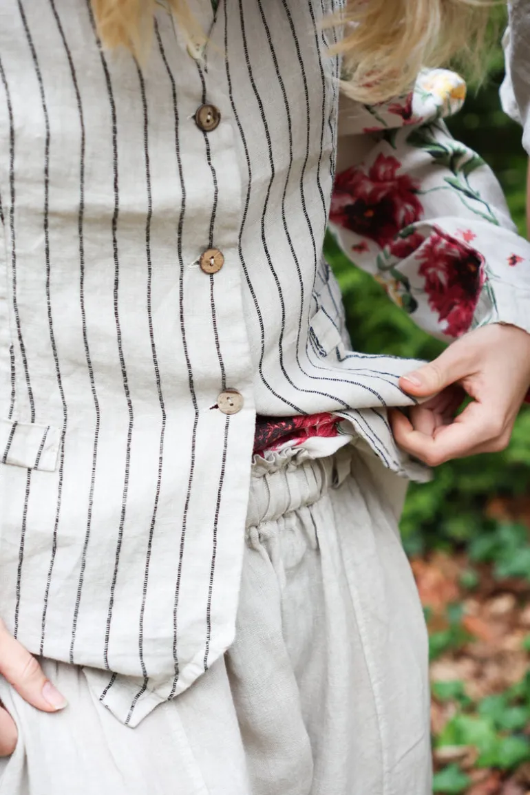 Västen matchas självklart med en stor attitude linneboyfriendskjorta och shorts. Eller över en linneklänning. Lager på lager av det vackra linnet – det är linen attitude power…