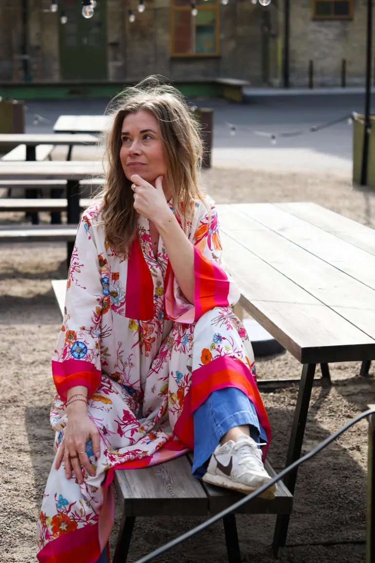 En one size dress, rymlig, passar utan problem upp till 42. Kolla måtten så att klänningen blir perfekt för just dig.