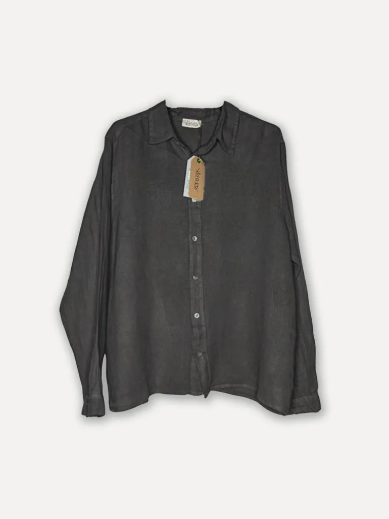 Boyfriend Attitude Linen Shirt, Dark Grey