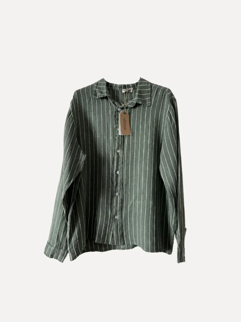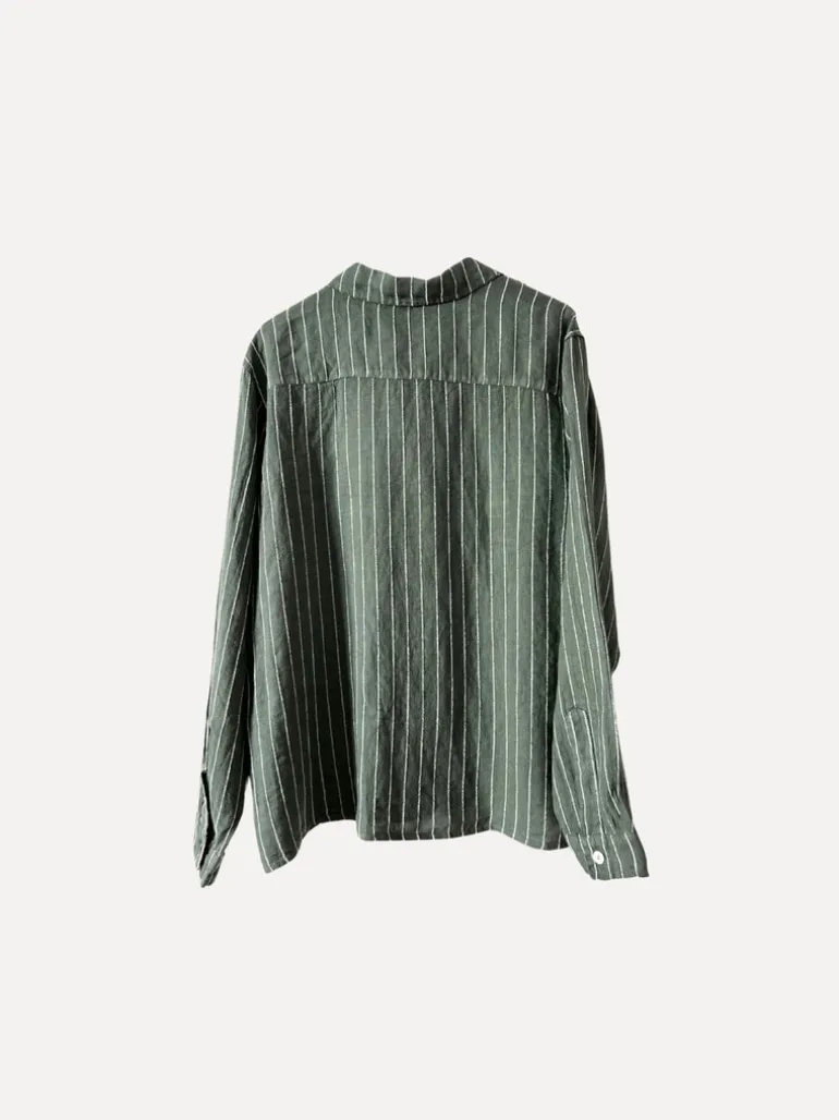 Boyfriend Attitude Stripe Linen Shirt, Army