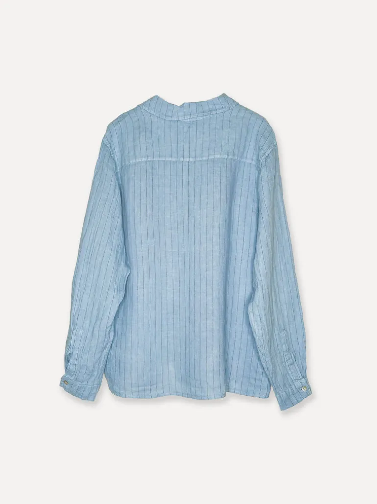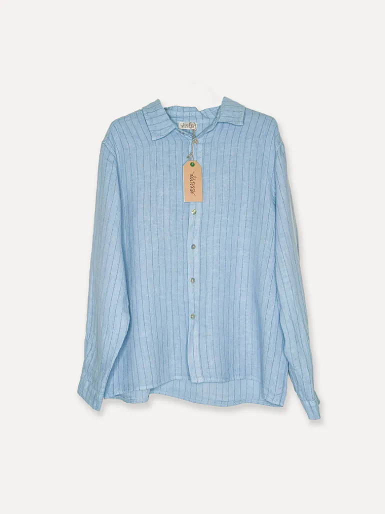 Boyfriend Attitude Stripe Linen Shirt, Sky Blue