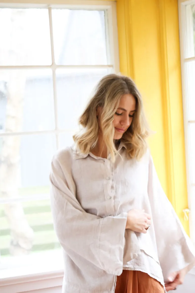 Butterfly Linen Shirt, Beige