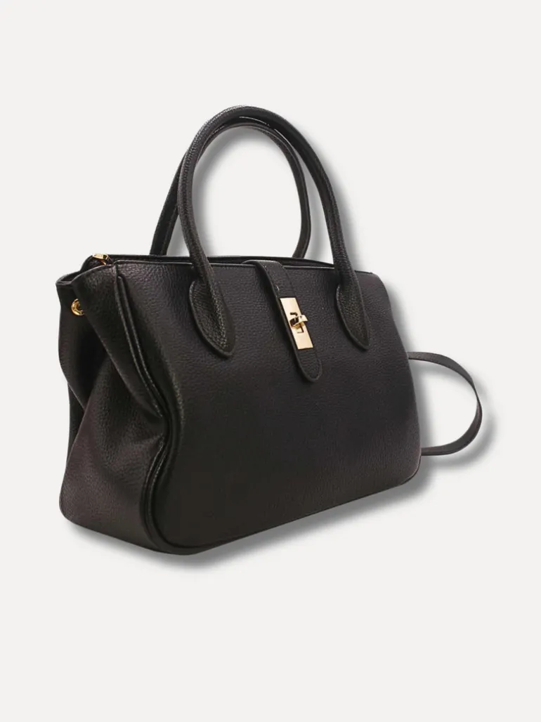 Handtag, justerbar axelrem, dragkedja och snyggt lås på framsidan.