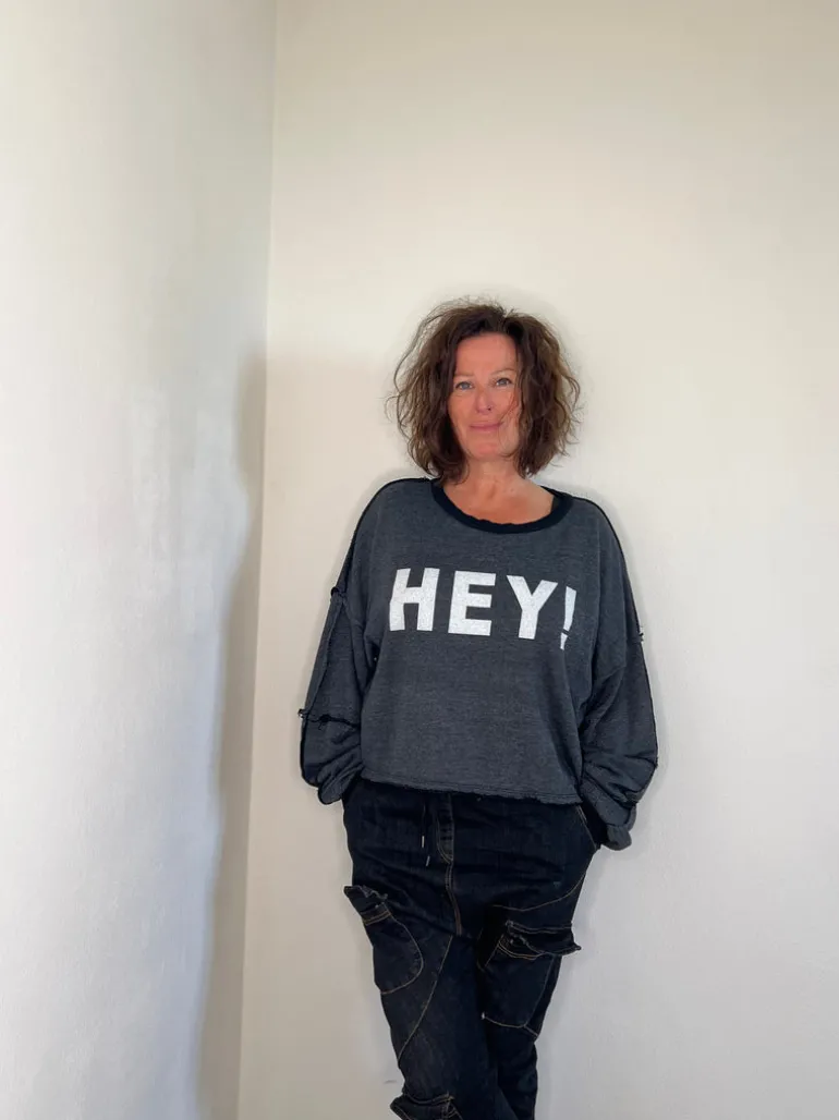 Denna tröjan har så skönt gung. En attityd som vi kan behöva hjälp att fylla på i reserverna. Dra på en ALBA vintageskjorta under och sedan denna tröjan, du blir förvandlad till HEY BEAUTY! Låt skjortan sticka ut undertill och uppe i kragen. Släpp loss! YOU rock!
