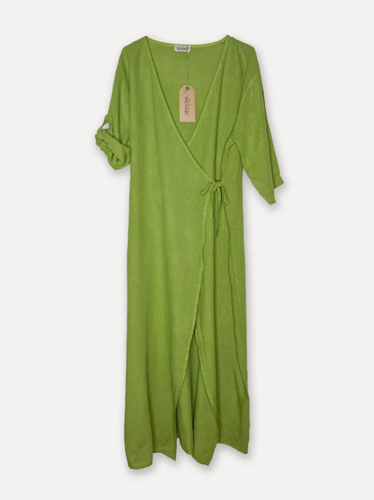 Linen wrap attitude dress, Olive Green