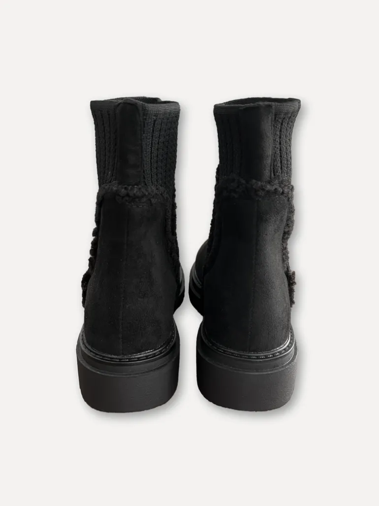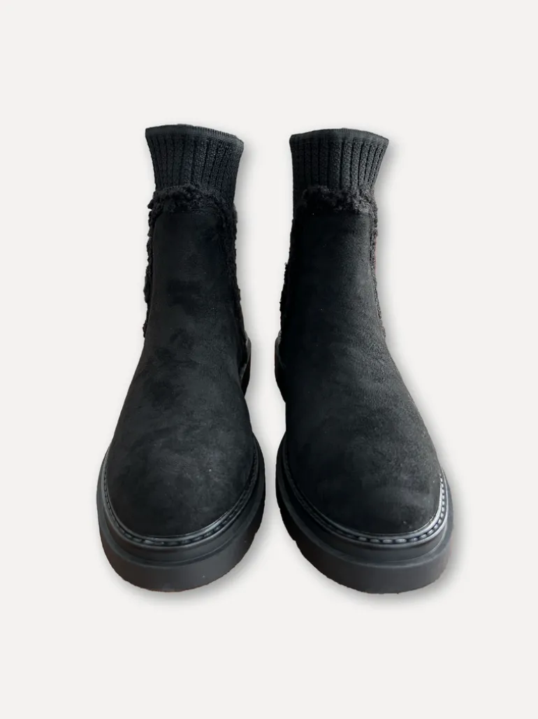 Låg boot i konstmocka med stretchig textilkant och gummisula. Perfekt för den kommande hösten. Snygg att matcha med strumpbyxor/tights och en skön klänning och Cardigan.
