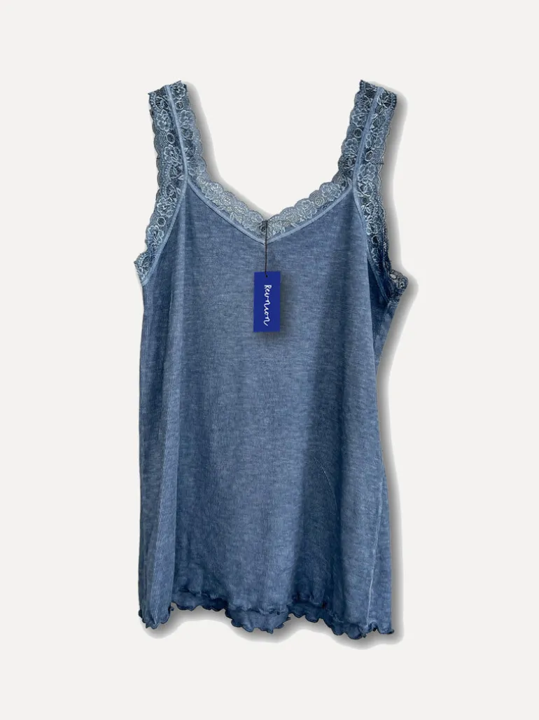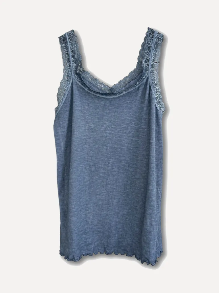Ett perfekt ribbat baslinne med spets, perfekt att bära under blusar eller klänningar med lite djupare urringning eller bara som den är med en kofta eller kavaj över.