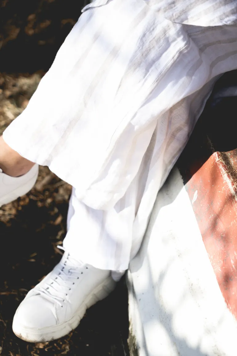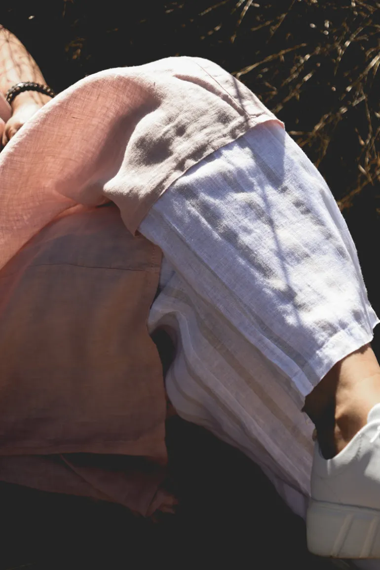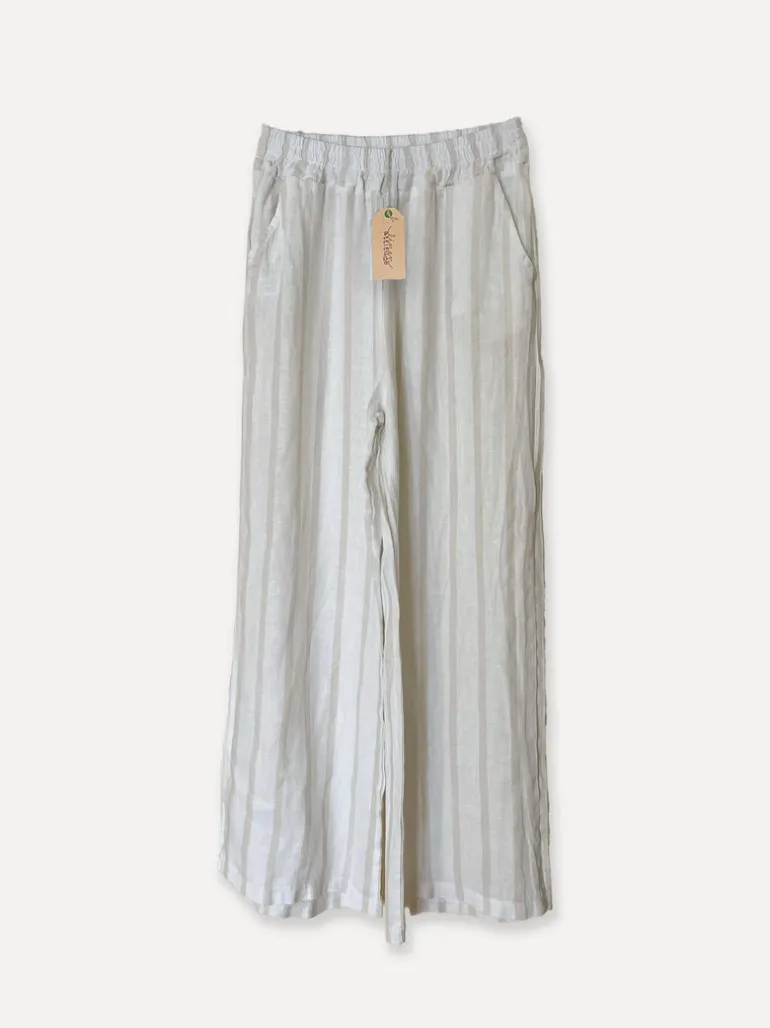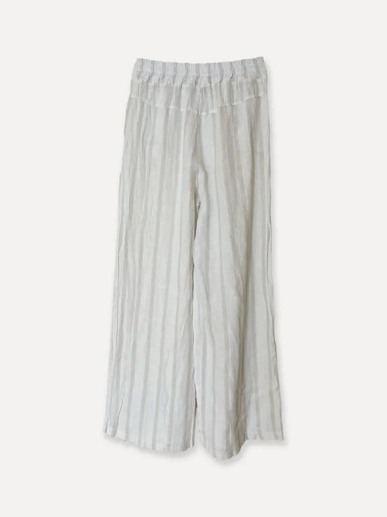 Lungo Attitude Striped Linen Pants, Beige