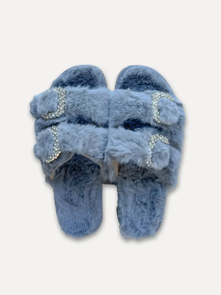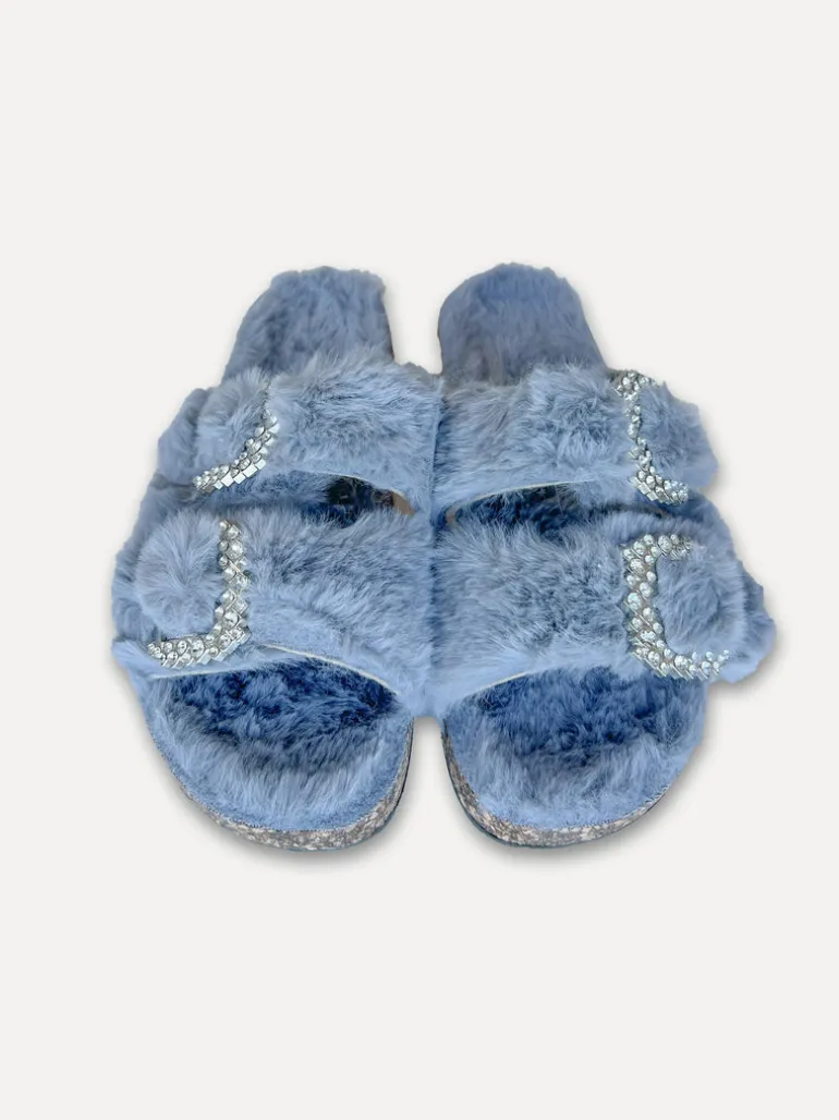 Otroligt sköna slip in tofflor med konstpäls och snygga spännen.