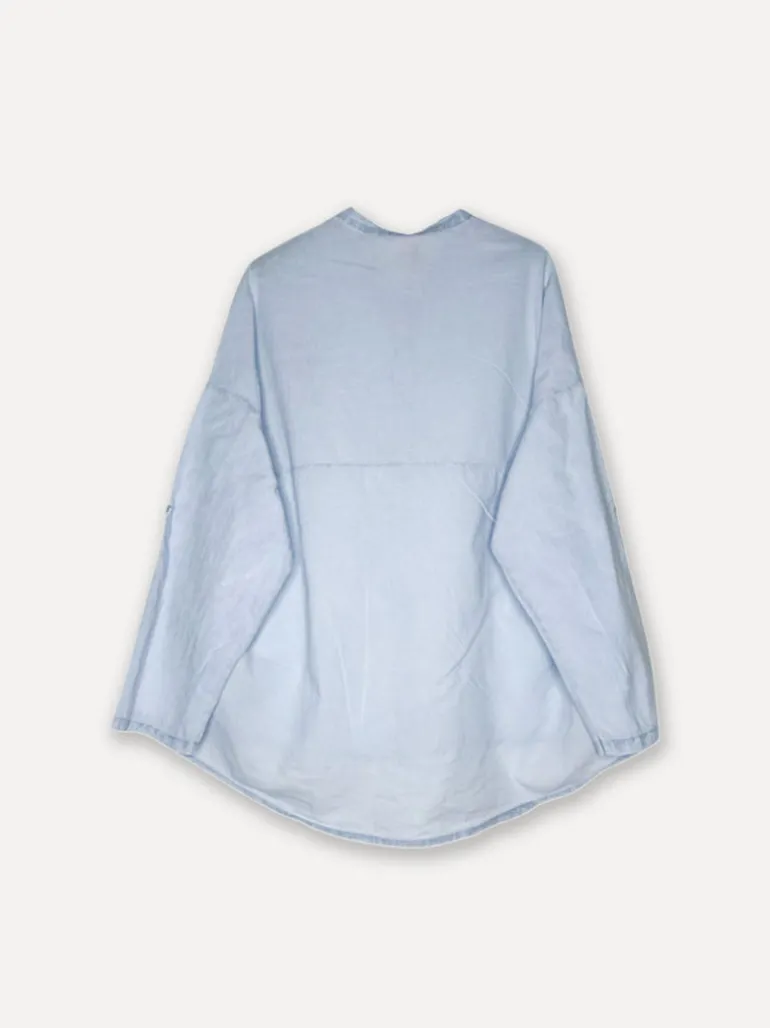 En blus för hela åren men just nu i vårens ljus toner, 100% bomull. Skön, mjuk, cool. Stentvättad – vilket innebär att den har en ojämn vintagelook.