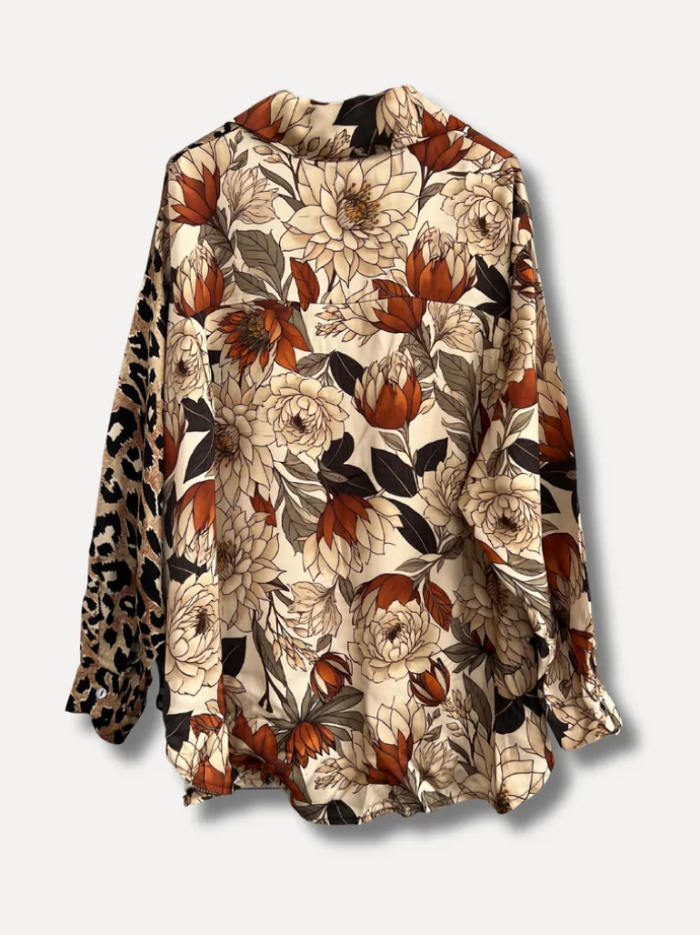 Luftig blus i skön viskosmix med snyggt print, knappar längs framsidan och rymlig passform för både komfort och stil. Något längre baktill.
