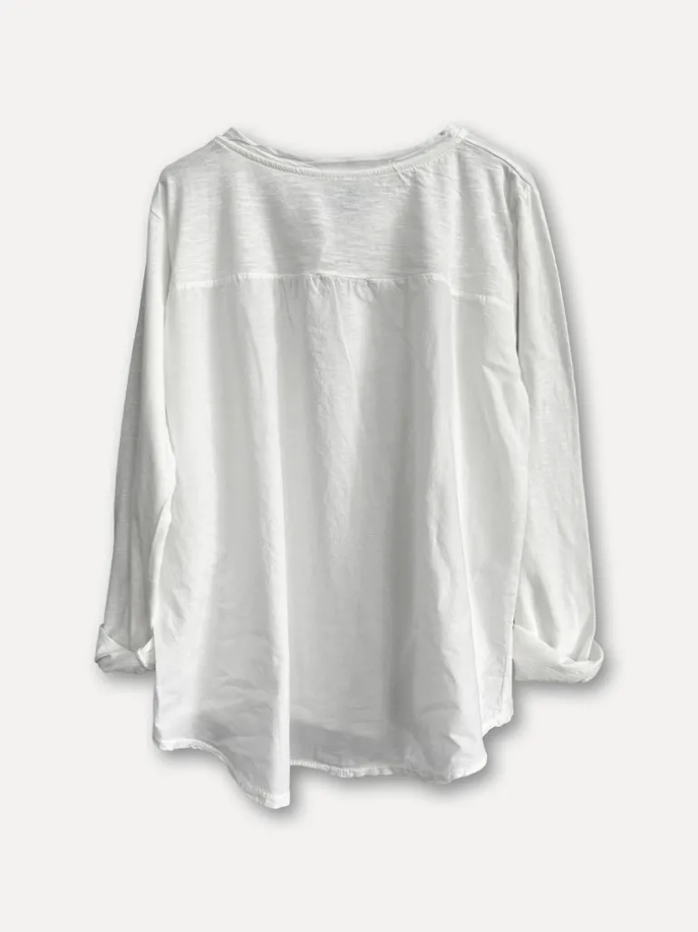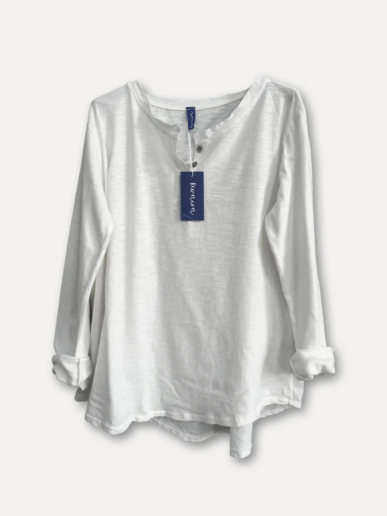 Njut av mysiga dagar med denna sköna långärmade bomullstopp med snygg knappdetalj vid halsen. Perfekt basplagg till din garderob.