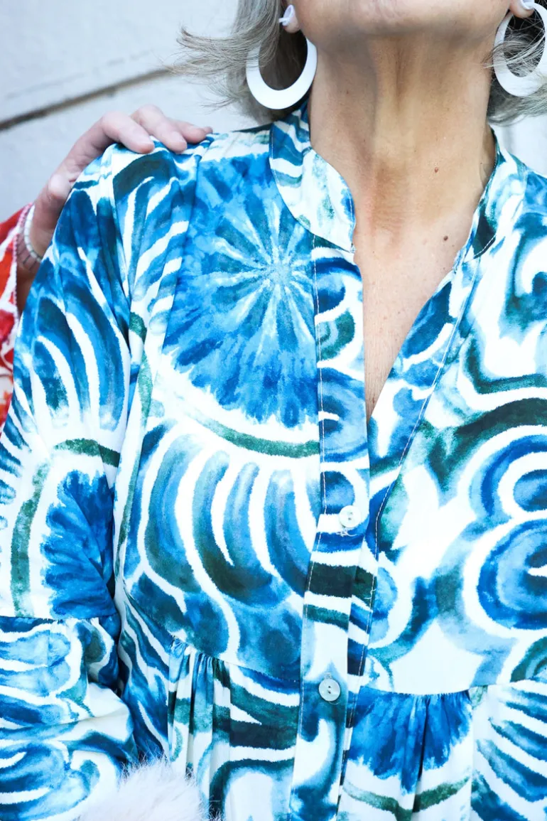 Och Sunny clouddress har en klassisk form med ett svepande vackert mönster i stora penseldrag. Den vill att du tar för dig av livet och att du ser solen trots att molnen ibland är i vägen. Shine on girly!