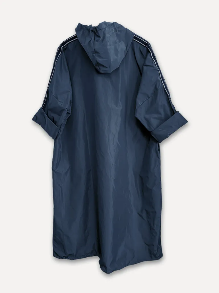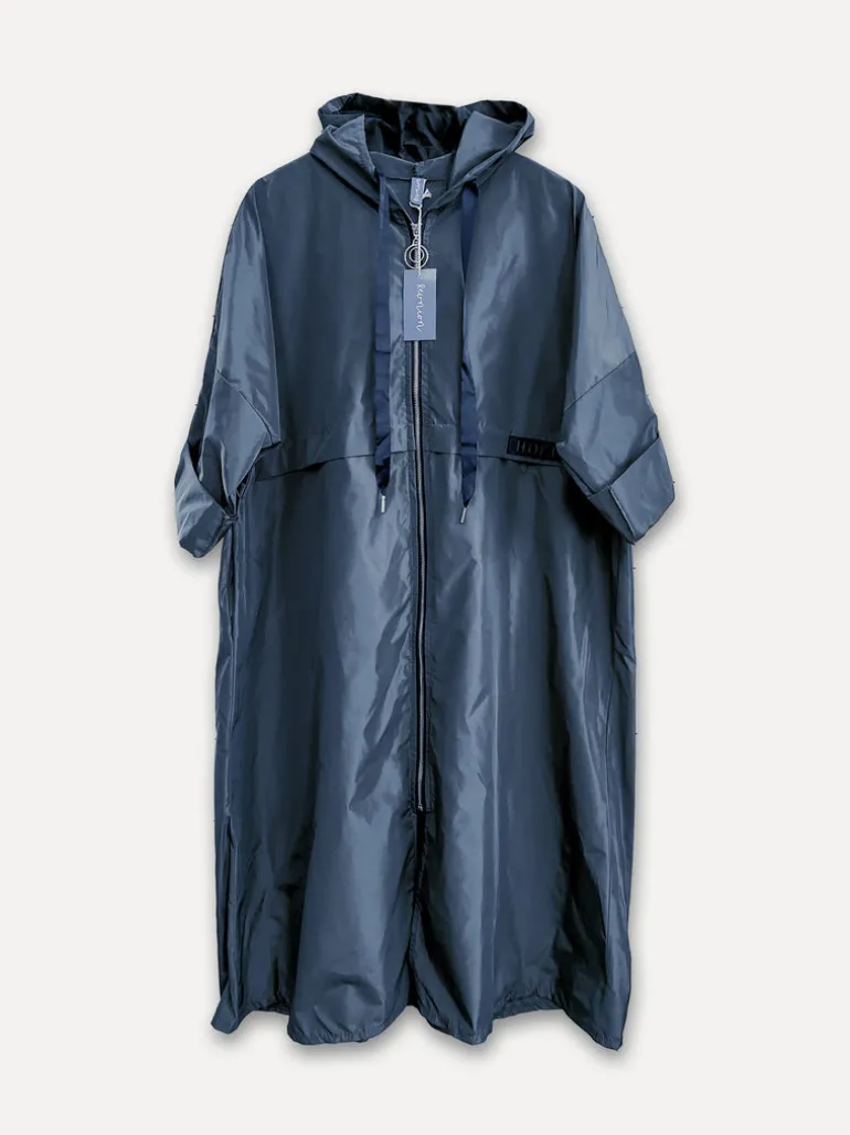 En stilren och lätt kappa med huva, dragkedja och justerbara snören. Perfekt för lätt duggregn, men inte vattentät. En chic och praktisk detalj för varje outfit.