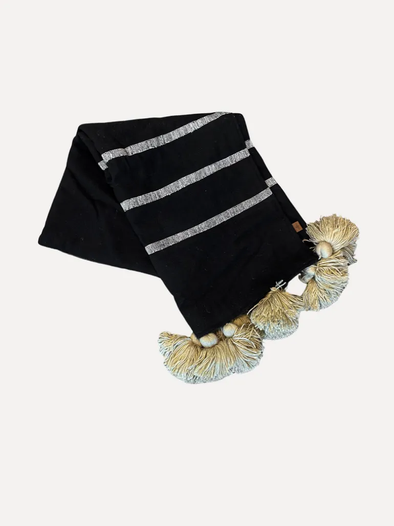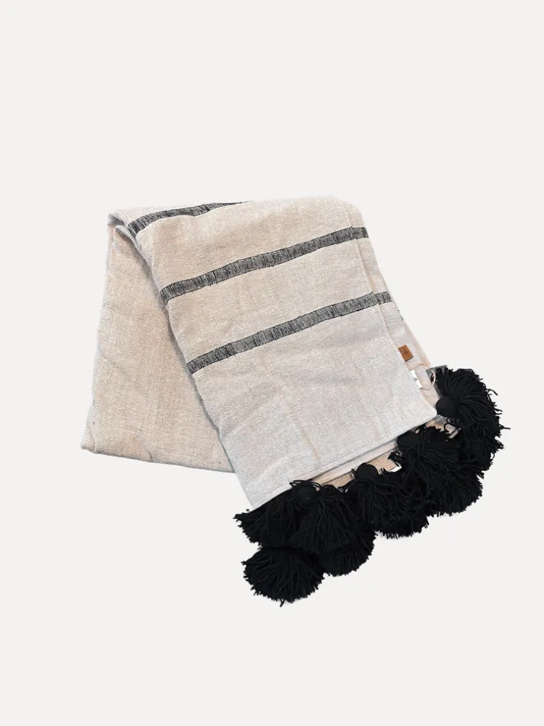 Vacker filt med tofsar i naturfärger!