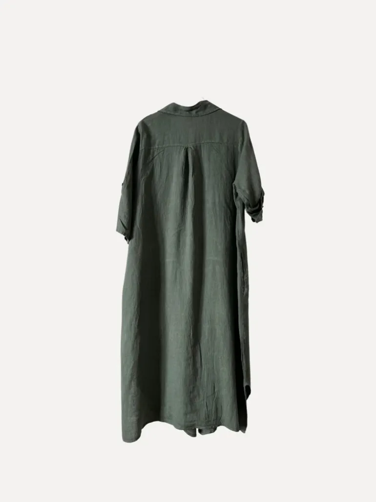 JOAN DRESS är tillbaka! Jösses vilken efterfrågan, vi är så glada att ha en av våra core pieces tillbaka, Joan, en hellång linneklänning som du kan bära som den är eller uppknäppt som en kaftan.