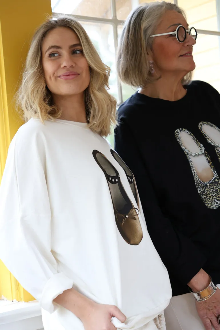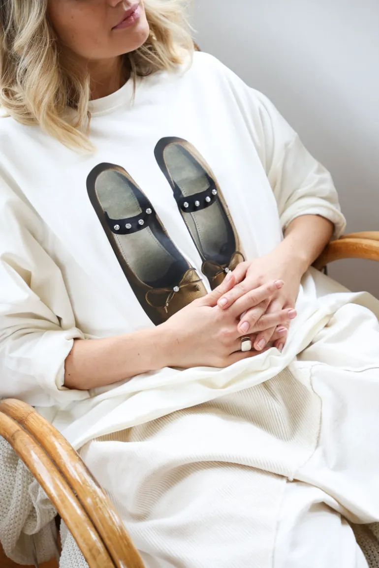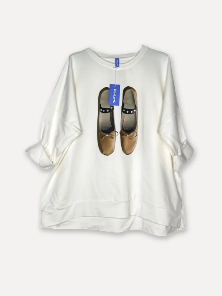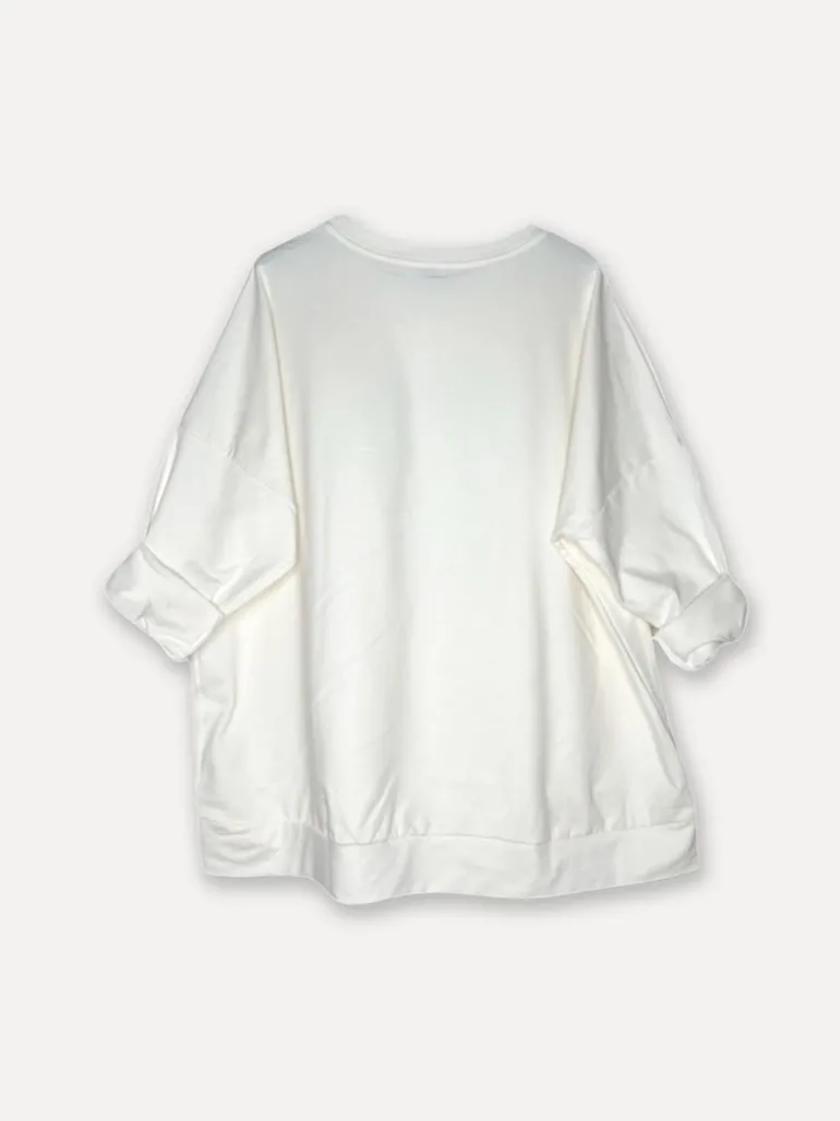 Stor rymlig äkta collegetröja, mjukaste mjuka. Med coolt print och pärlor.