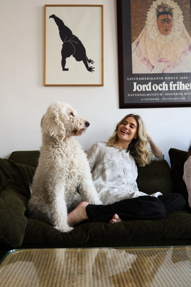 Jag kunde inte ta ögonen från detta mönstret. Vad är det? Vad föreställer det? Sen kom jag på det. Kolsyra, blommig kolsyra. Så känns det i magen när sommaren är på väg, när förälskelsen bubblar, när någon längtar efter dig. Din älskling, ditt barnbarn, dina hundar. Kolsyra. Vi gjorde en klänning med blommig kolsyrekänsla.